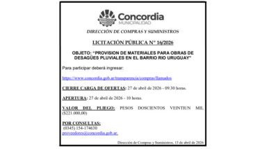 La Dirección de Tránsito y Transporte de la Municipalidad de Concordia informa que con motivo de la realización del Concurso …