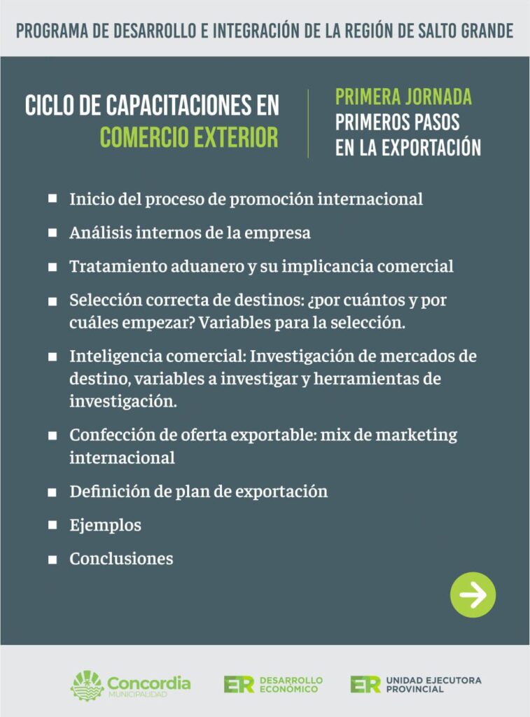 4. Concordia será sede del ciclo de capacitaciones en comercio exterior en el marco del Programa de Desarrollo e Integración de la Región de Salto Grande