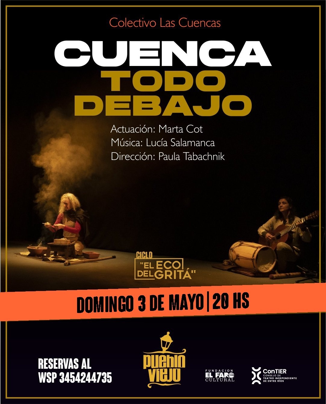 Más tarde, a las 20 horas, será el turno de “Cuenca. Todo Debajo”, una pieza que se sumerge en la historia profunda del territorio para rescatar la figura de Melchora Cuenca, compañera de Artigas y parte activa de la Liga de los Pueblos Libres. Con más de siete años de recorrido, la obra vuelve a escena luego de presentarse en distintos puntos del país y en Uruguay, consolidándose como una propuesta que combina investigación histórica, sensibilidad y potencia interpretativa.