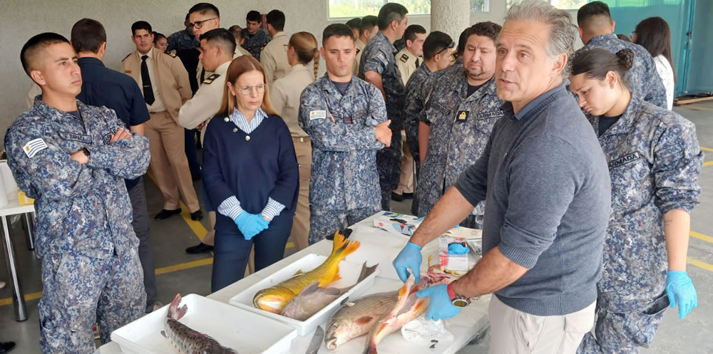 La jornada incluyó también una dinámica de taller, con énfasis en el trabajo de campo y el registro de datos por parte de las Prefecturas. En una instancia práctica, los asesores, junto a los Coordinadores del Área de Pesca de CARU, Pilar Ojeda y Héctor Procura, ofrecieron una introducción sobre la anatomía de los peces, desarrollando un trabajo grupal con ejemplares del río Uruguay y abordando situaciones comunes durante los muestreos.