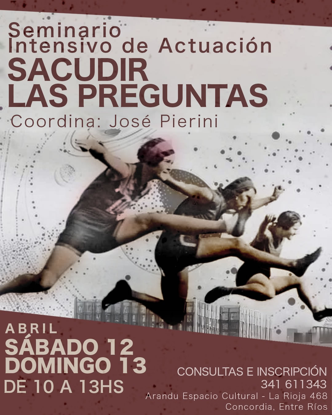 En abril, el actor, docente y dramaturgo José Pierini, de la ciudad de Rosario, brindará en Concordia el Seminario Intensivo de Actuación «Sacudir las preguntas», dirigido a actrices, actores, y teatristas.