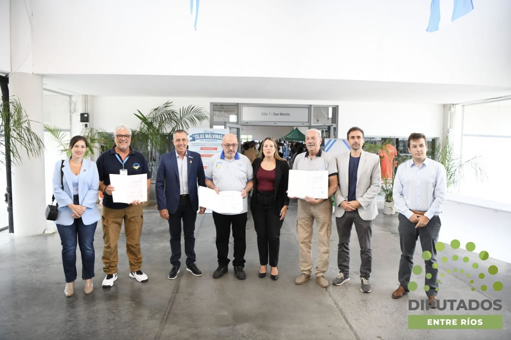 Diputados entrerrianos entregaron a representantes de los veteranos de guerra de Malvinas las declaraciones de interés, aprobadas por la Cámara baja, de las actividades que se desarrollan en Paraná en el marco de un nuevo aniversario de la gesta. Fue este viernes en la Sala Mayo, donde se lleva adelante una muestra que forma parte de la “Semana de Malvinas”.