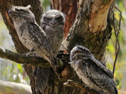 El podargo australiano (Podargus strigoides) pertenece a la familia Podargidae, habita en Australia y resalta por tener una boca ancha que recuerda a la de las ranas (de ahí que en inglés se las llame frogmouth, es decir, “boca de rana”).