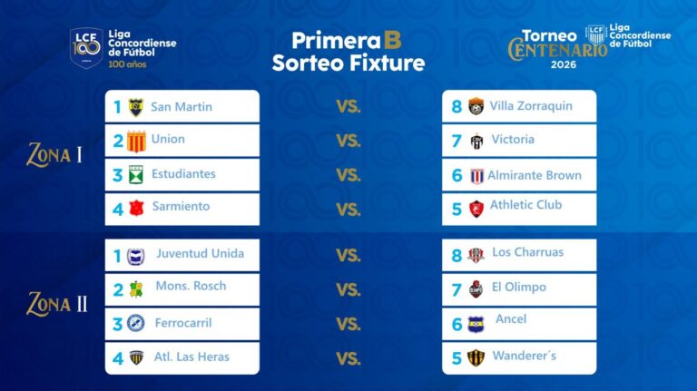 Con la presencia del Presidente de la Liga Concordiense de Fútbol, Julio Larocca, el vicepresidente Daniel Odiard, los Secretarios Matías Fink, Luciano Odiard y Tomás Salarí, el Presidente de la B, Darío Píriz más el acompañamiento de los delegados y presidentes de los 28 clubes, se realizó el sorteo del fixture para los torneos de este 2026 que se pondrán en marcha el fin de semana del 15 de marzo.