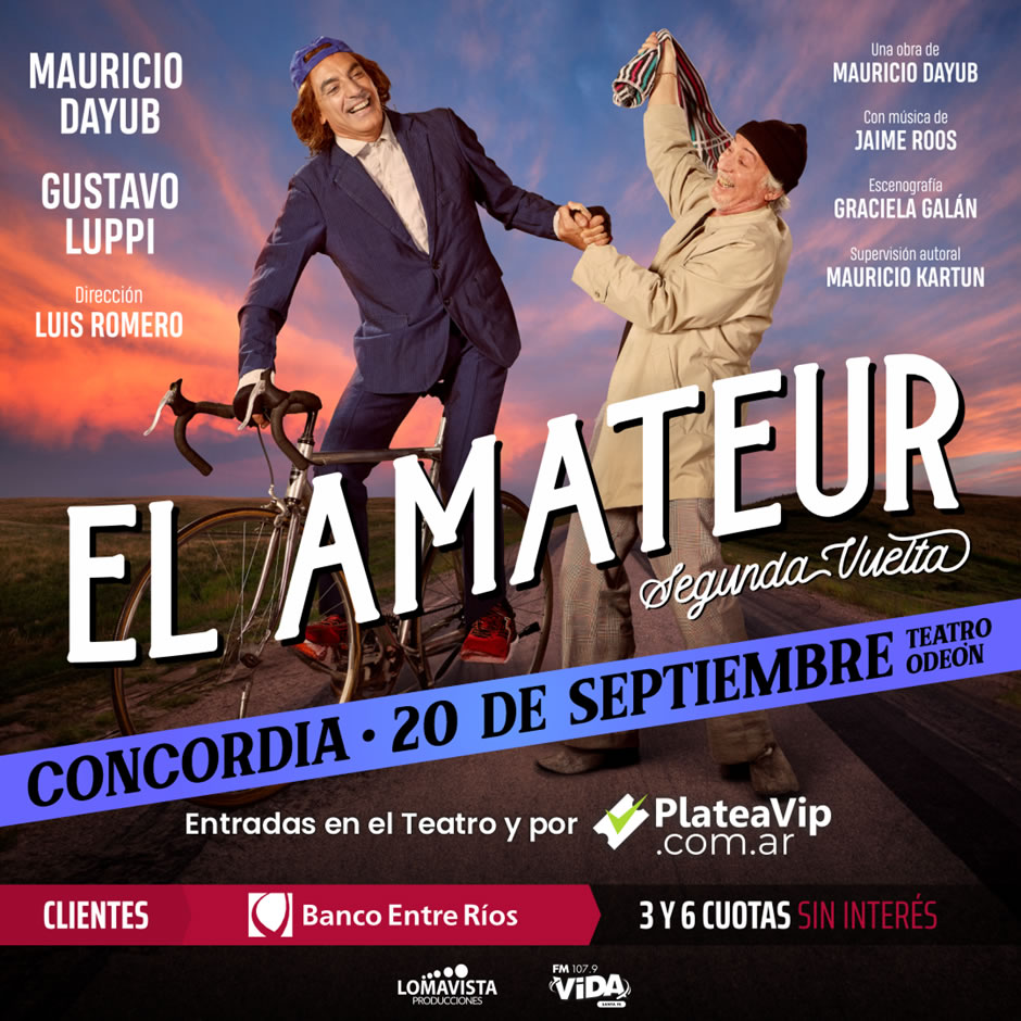 El próximo 20 de septiembre, el Teatro Odeón recibirá a Mauricio Dayub y Gustavo Luppi con la obra El Amateur, segunda vuelta, un clásico del teatro argentino que, a más de 25 años de su estreno, sigue emocionando y movilizando al público.