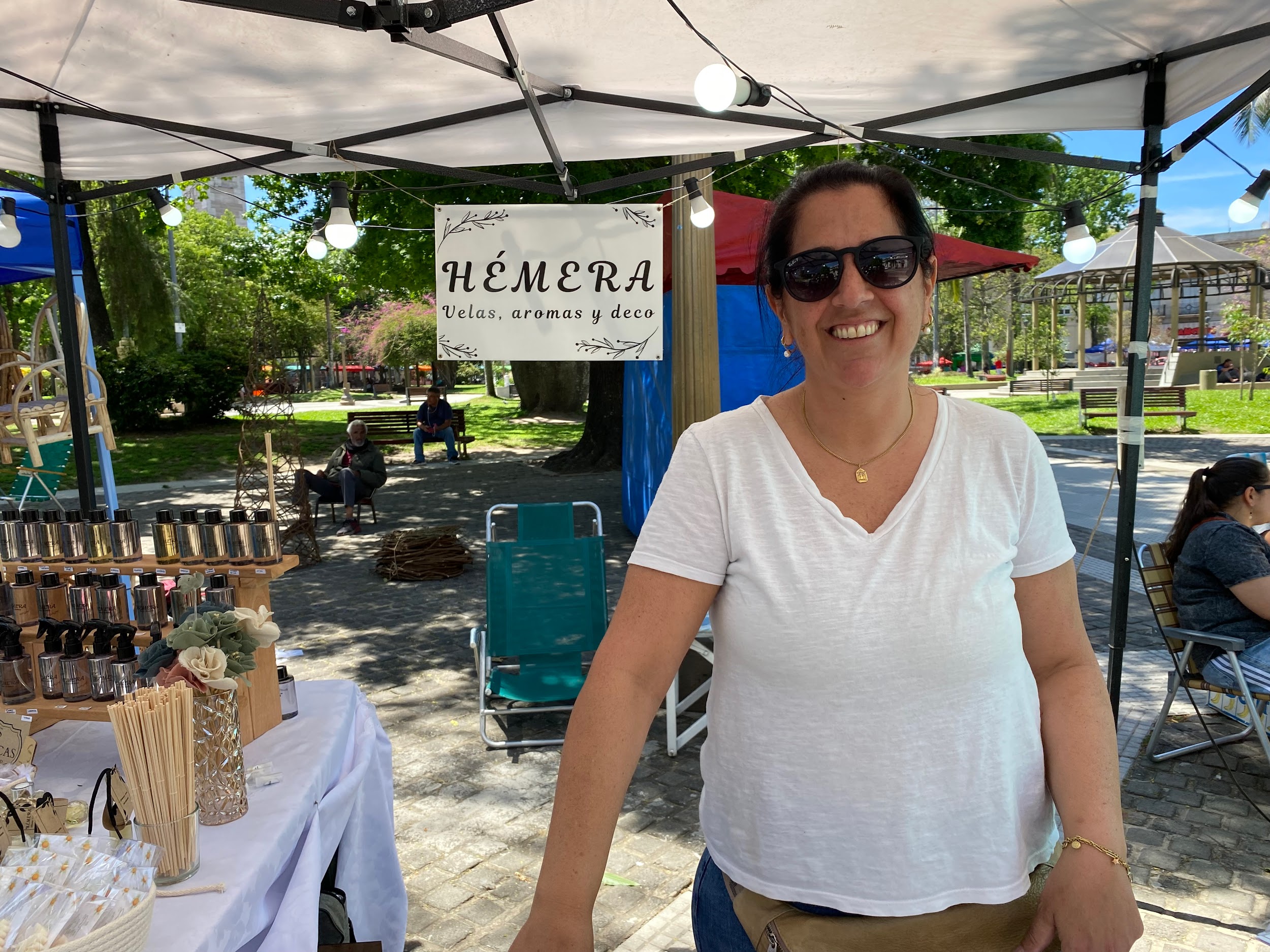 También están los que combinan la feria con otros espacios. Desde Hémera Velas, por ejemplo, explican que además del puesto, tienen un showroom cerca de la terminal: “Vendemos velas de soja, difusores, todo lo que es aromas. En la feria estamos hace un año y medio, y sin dudas los fines de semana largos son los que más se mueven. Hay mucho turismo, y se nota en las ventas”.
