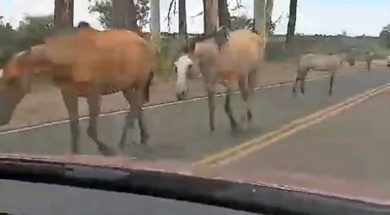 Una tropilla de caballos fue filmada en pleno tránsito de ingreso al puente Alvear