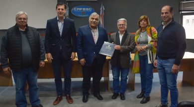 Los presidentes de la Comisión Administradora para el Fondo Especial de Salto Grande, Luis Benedetto, y de la Cooperativa Eléctrica …