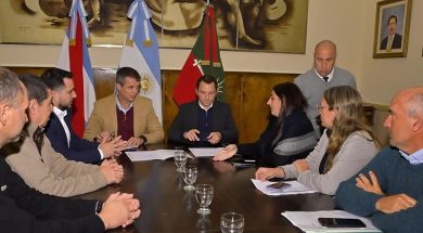 El intendente Enrique Cresto; el director ejecutivo de la Administradora Tributaria de Entre Ríos (ATER), Germán Grané, y el secretario …