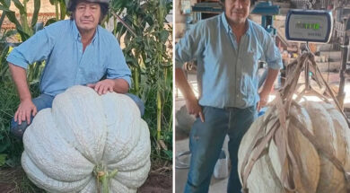 Julio Flores, oriundo de Entre Ríos y residente en Alejandro Roca, logró cosechar un zapallo gigante de más de 111 …