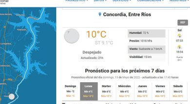 El Servicio Meteorológico Nacional prevé para Concordia y la región, un arranque de semana con buenas condiciones climáticas y bajos …