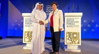 El ministro de Finanzas Ali bin Ahmed al-Kuwari junto a la directora gerente del FMI Kristalina Georgieva.